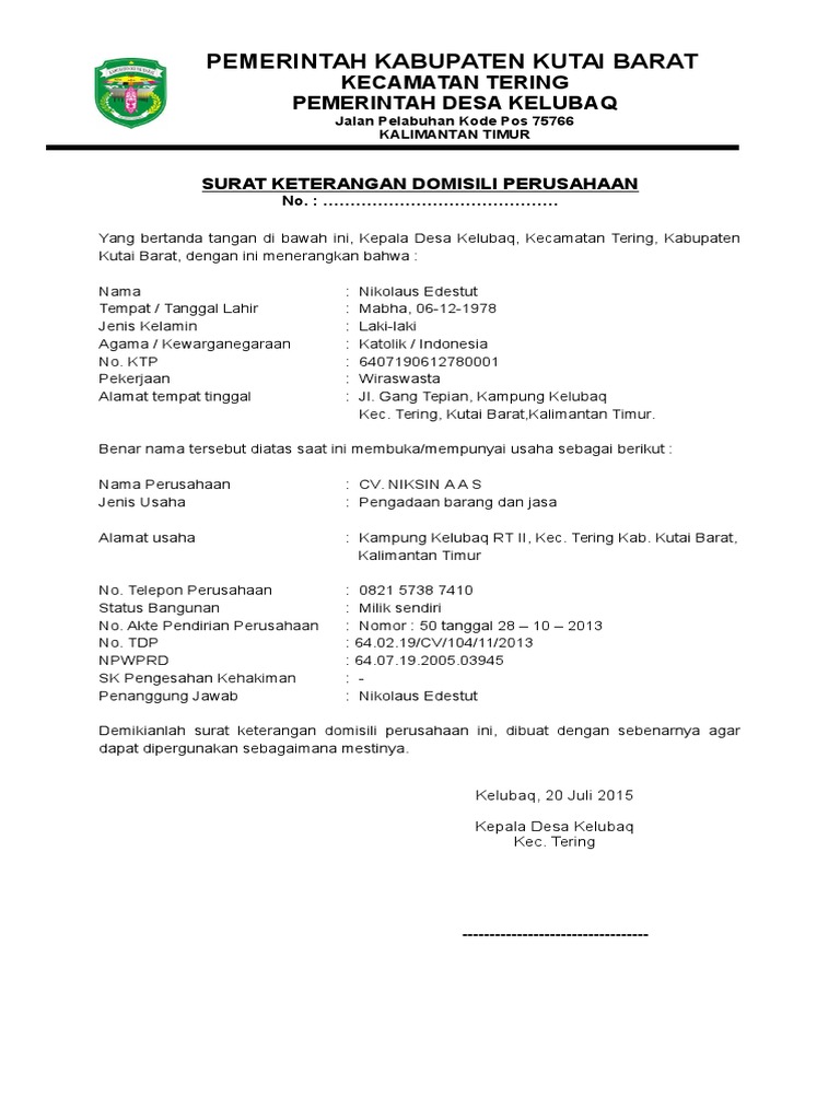 Channel ini berisi tutorial komputer lengkap, review, unboxingcara membuat contoh surat keterangan domisili yang dikeluarkan desa untuk warganya menyatakan. Surat domisili sebenarnya bisa menjadi pengganti surat surat domisili memang bersifat wajib dimiliki jika melihat pasal 15 ayat 1 uu administrasi berikut ini cara membuat surat keterangan domisili perusahaan secara online di dki jakarta. Surat ini juga bisa dipakai oleh seseorang yang ingin melamar pekerjaan dan juga mengikuti berbagai kegiatan dan program dari pemerintah. Ini syarat dan cara buatnya. Surat keterangan domisili usaha ini di. Contoh surat domisili untuk npwp perusahaan. Contoh surat » surat keterangan » contoh surat keterangan domisili perusahaan dari kelurahan. Surat keterangan domisili usaha (skdu) adalah surat pernyataan atau bukti yang sah dari keberadaan suatu usaha atau perusahaan dimana dikeluarkan oleh pemerintah tempat usaha, biasanya dikeluarkan oleh pihak kelurahan dan kecamatan. Pemerintah kabupaten karawang kecamatan ciampel kepala desa kutamekar jalan suryacipta swadaya btb ix kecamatan ciampel, kabupaten karawang telp. Contoh surat keterangan domisili perusahaan. Demikianlah surat keterangan domisili perusahaan ini, dibuat dengan sebenarnya agar dapat dipergunakan sebagai persyaratan membuka rekening bank dan membuat npwp perusahaan. Surat keterangan domisili dari kepala desa. Maka biasanya perlu untuk membuat surat keterangan domisili itulah tulisan mengenai contoh surat keterangan domisili perusahaan dari desa.
